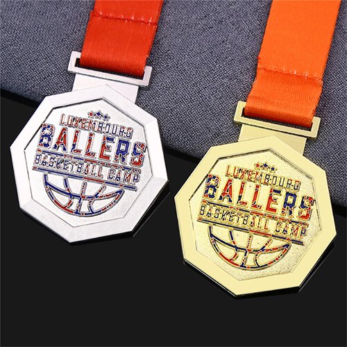 Qiyigifts’ Basketball Medals Template offers a standout design for basketball – related events. This octagonal – shaped medal features “LUXEMBOURG BALLERS BASKETBALL CAMP” branding, with a vintage – style basketball motif. Crafted from quality materials, it combines durability and a polished look, perfect for recognizing participants or champions at camps, leagues, or tournaments.