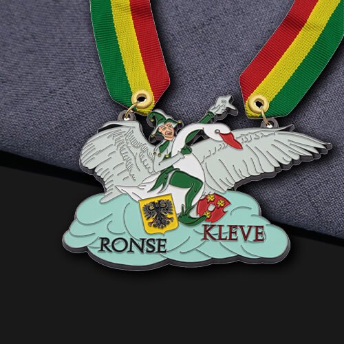 Unlock the magic of your event with Custom Emerald Magician’s Aerial Medals from Qiyigifts. Created to honor fantasy, magic, and creative excellence, these medals feature a striking design that captures the imagination. At the center is a bold swan-magician motif, paired with the whimsical “RONSE KLEVE” branding. Together, they tell a story of mystery, illusion, and wonder.