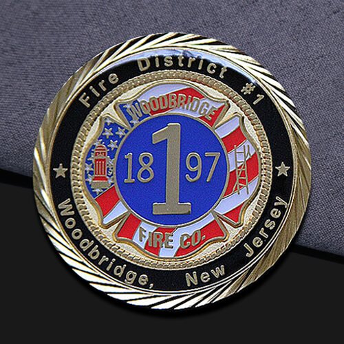 Honor Woodbridge Fire District #1 with Qiyi-Gift’s Epoxy Firefighter Challenge Coin. It features vibrant epoxy details and “1897” to celebrate firefighting legacy.