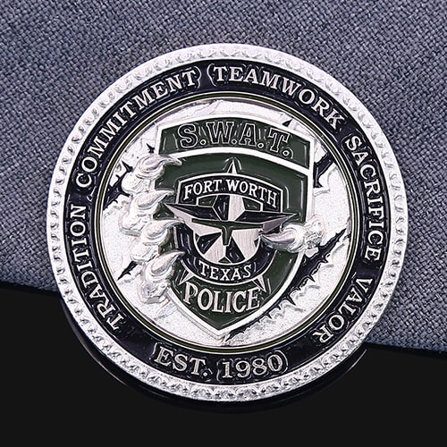 Honor Fort Worth PD SWAT’s legacy with Qiyigifts’ challenge coin. It features detailed “Tradition, Commitment, Teamwork, Sacrifice, Valor” engravings and the SWAT emblem, crafted for lasting quality.