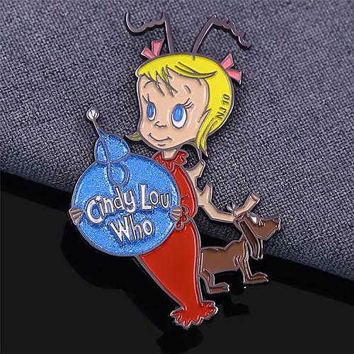 Qiyigifts Glittery Cindy Lou Who with Dog Enamel Pin – Whoville Christmas Collectible