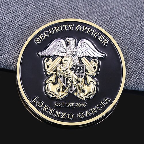 Discover honor in every detail with the Navy Security Officer Lorenzo Garcia Challenge Coin. This eye – catching piece features vivid naval – themed designs, brought to life with a sleek finish. The emblematic imagery adds a sense of dignity, catching the eye instantly.