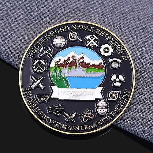 Discover pride in every detail with the Puget Sound Naval Shipyard Navy Challenge Coin. This eye – catching piece features vivid, shipyard – themed designs brought to life with a polished finish. The intricate symbols add a sense of honor, catching the eye instantly.