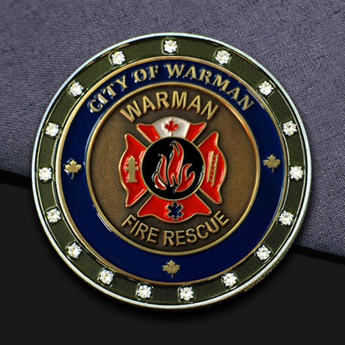 Honor firefighters with Qiyi-Gift’s Rhinestone Firefighter Challenge Coin. It features sparkling rhinestones and bold “City of Warman Fire Rescue” details, shining bright.