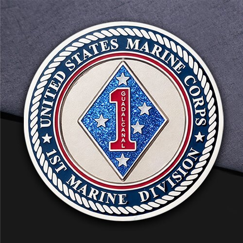 USMC 1st Marine Division Glitter Challenge Coin – Sparkling Military Collectible