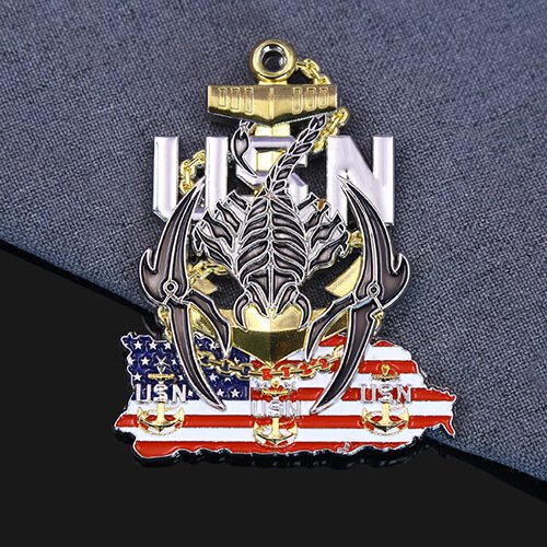 Uncover the essence of naval might with the USN Scorpion & Flag Emblem Navy Challenge Coin. This eye – catching piece features a vivid scorpion and flag design, brought to life with a meticulous finish. The emblem, combining the fierce scorpion and the iconic US flag, adds a sense of depth and power, capturing attention with its bold and striking appearance.