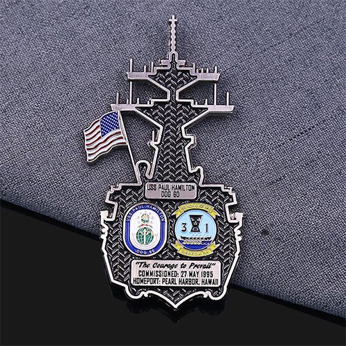 USS Vessel with American Flag Navy Challenge Coin – Tribute to Naval Excellence